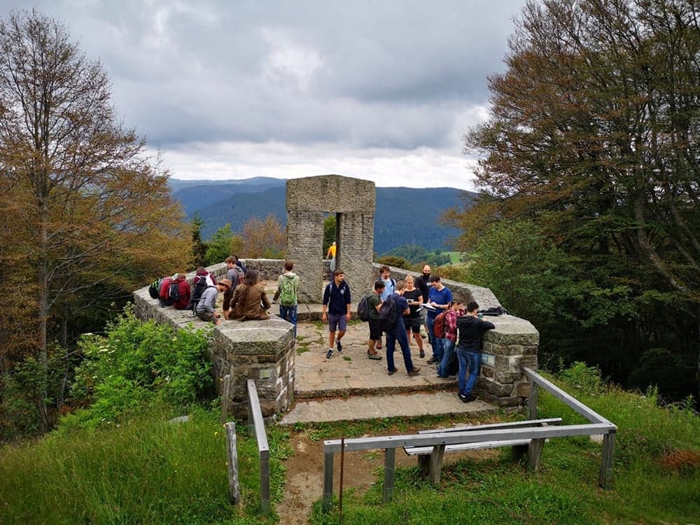 An verschiedenen Stationen mussten wir Rätsel lösen, um „Linus“ aus seiner verzweifelten Lage zu befreien. Für die Lösung der einzelnen Rätsel an den verschiedenen Stationen hatten wir insgesamt 210 Minuten Zeit. Die Rätsel führten uns über eine Strecke von 4,5 Kilometern, vorbei an Kühen, quer über den Schauinsland. Mit jedem gelösten Rätsel erhielten wir ein Stück von einer Karte, die uns zur nächsten Station führte. Circa auf der Hälfte der Strecke trafen sich beide Gruppen wieder an einer Station. Nachdem beide Gruppen separat voneinander das Rätsel erfolgreich lösten, trennten sich wieder die Wege der Gruppen.